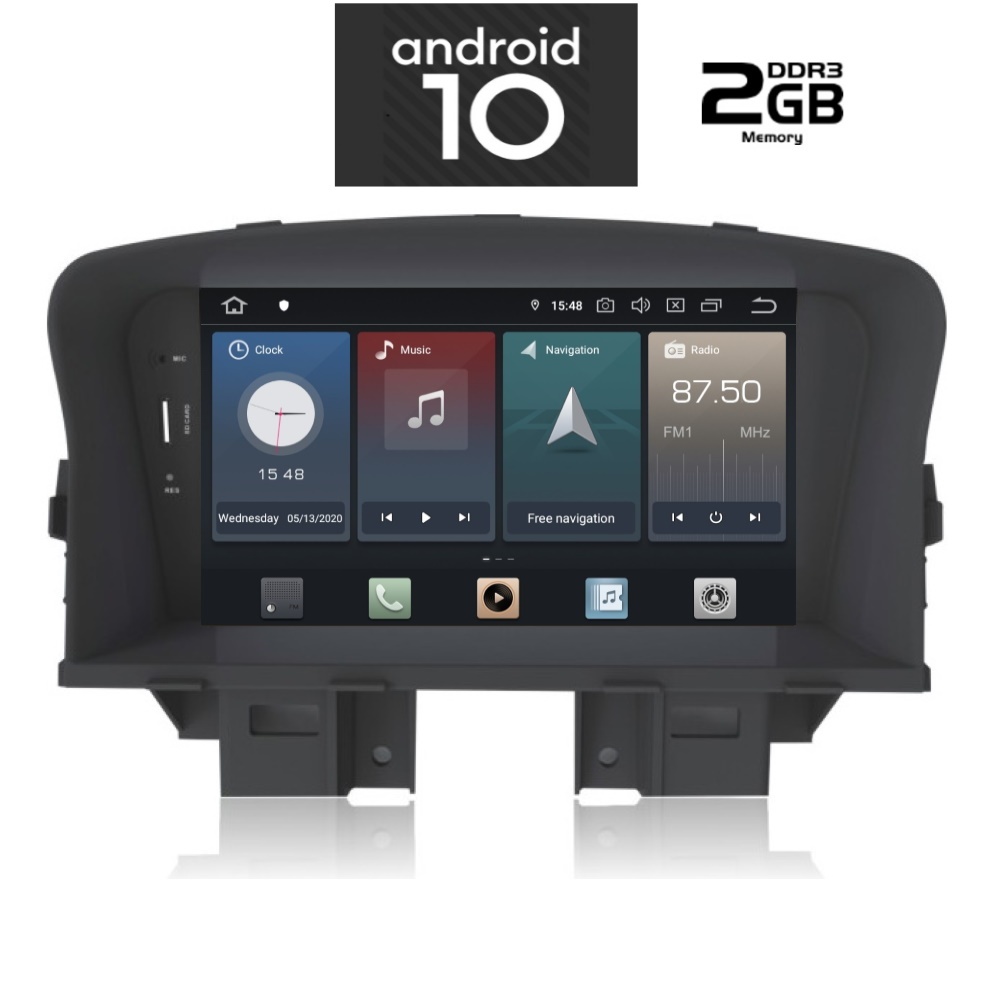 MULTIMEDIA OEM CHEVROLET CRUZE mod. 2008-2012 – ANDROID 10 Q – CPU : PX30 CORTEX A35 1.5Ghz – Quad core – RAM DDR3 : 2GB