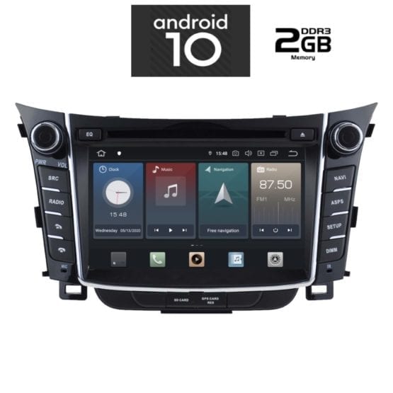 MULTIMEDIA OEM HUYNDAI i30 mod. 2012-2017 8΄΄ – ANDROID 10 Q – CPU : PX30 CORTEX A35 1.5Ghz – Quad core – RAM DDR3 : 2GB